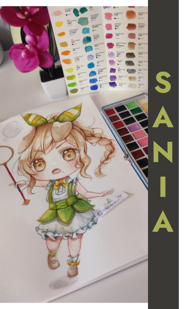 • Despite her serious scientific nature, Sania has a soft spot for glitter. She often adds it to her alchemical projects “for extra flair,” but it usually causes more problems, like the time she turned her entire notebook into a glowing, sparkly disaster.